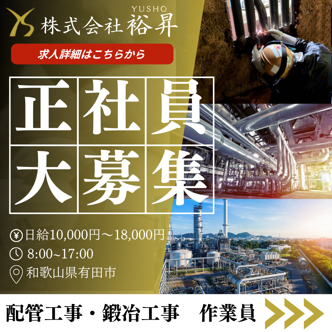 ・溶接工事業 ・各種プラント工事業 ・とび・土木工事業 ・管工事業 ・鋼構造工事業 ・機械器具設置工事業 |