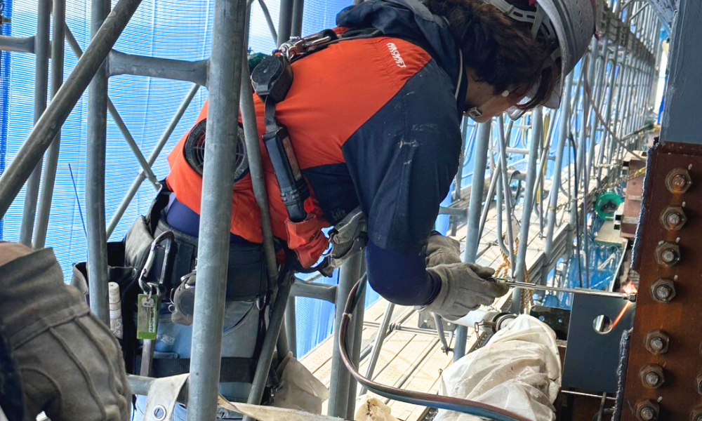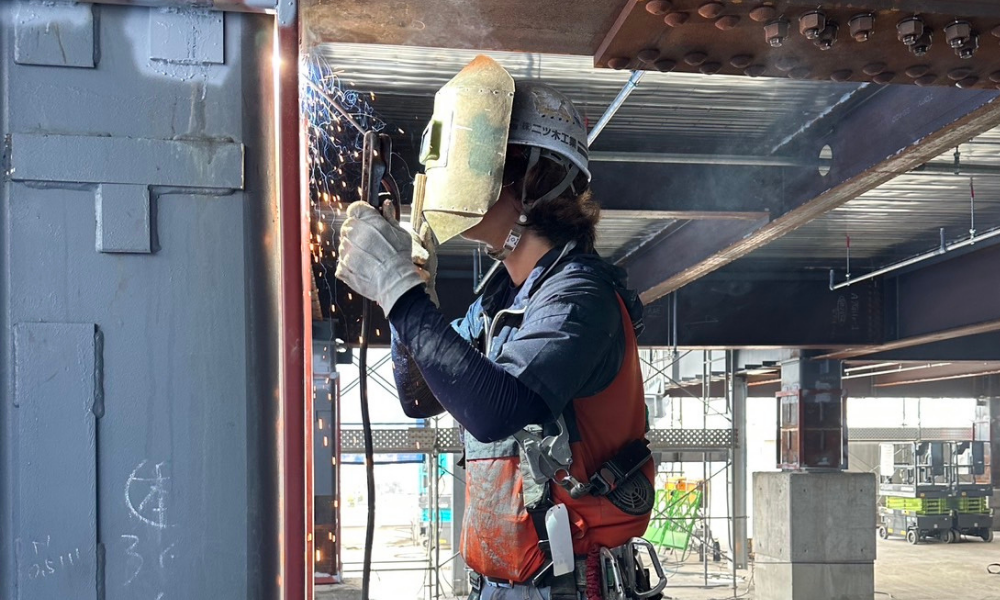 ・鉄骨建方:構造鉄骨の組み立て・設置作業。