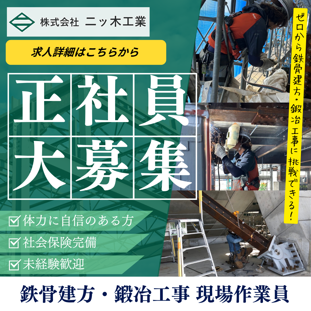 株式会社二ツ木工業は埼玉県児玉郡に拠点を置く建設会社です。主に「鉄骨建方」と「鍛冶工事」を専門分野としております。