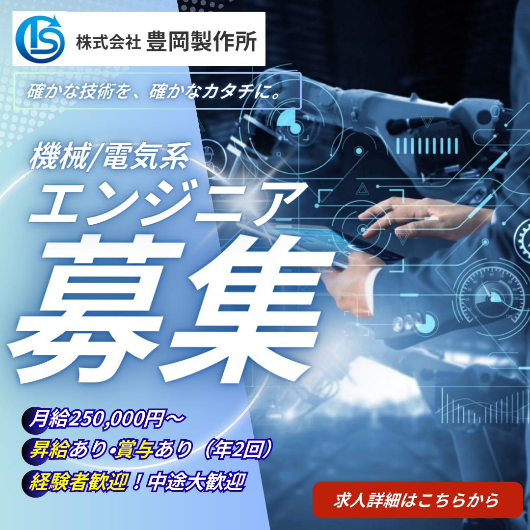 工学系の高校、専門学校、大学卒、職業能力開発大学校且つ、産業用機械製造メーカーでの経験をお持ちの方 |