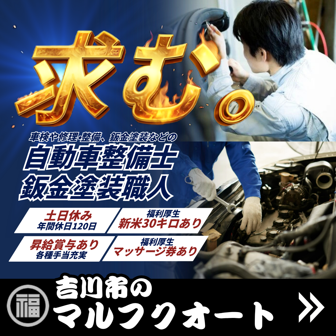 自動車整備、鈑金、塗装、カスタム仕様などの作業を担当していただきます。